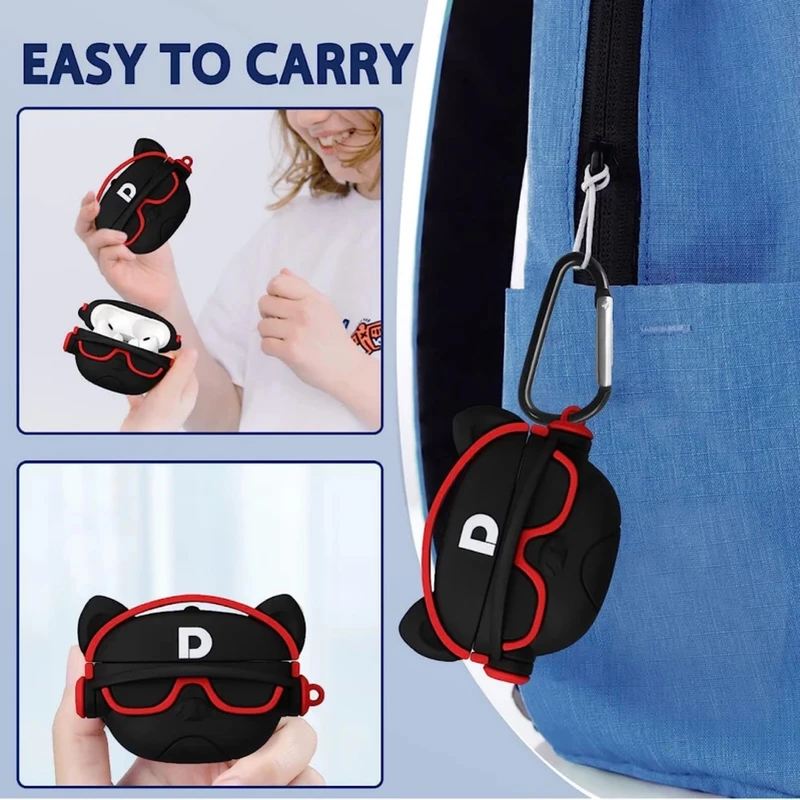 کیس محافظ ایرپاد وسیله ی خلاقانه ای است که با قرار دادن ایرپاد درون آن می توانید از ایرپاد در برابر آسیب هایی مانند خراشیدگی، آلودگی ، ضربه و حتی گم شدن محافظت نمایید . نگهدارنده ایرپاد اپل با پوشش 360 درجه بصورت کامل کیس شارژ را دربر می گیرد و مانع از ایجاد خط و خش می شود . در زیر کیس ورودی پورت لایتنینگ قرار دارد و بدون آنکه نیاز به بیرون اوردن آن از داخل قاب محافظ داشته باشید ، می توانید آن را شارژ کنید. این کاور دارای یک حلقه نگهدارنده سیلیکونی است که از آن میتوانید در صورت نیاز ، برای آویزان کردن ایرپاد به دسته کلید، کوله و یا کمربند استفاده کنید.ظاهر این کاور به شکل عروسکی طراحی شده است ، اما از داخل اندازه ایرپاد دقیقا برش خورده است و ایرپاد درون کاور کاملا فیت می شود.