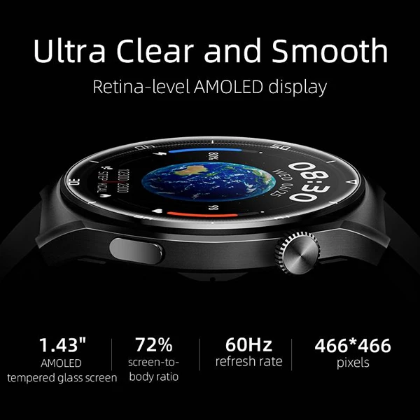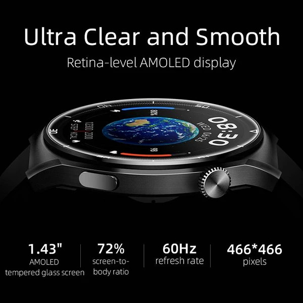 ساعت هوشمند QCY GT2 به نمایشگر 1.43 اینچی AMOLED با رزولوشن 466×466 پیکسل مجهز است که کیفیت تصویر فوقالعادهای را ارائه میدهد. روشنایی 1000 نیت و نرخ تازهسازی 60 هرتز باعث میشود تا محتوای روی صفحه حتی در نور مستقیم خورشید بهراحتی قابل مشاهده باشد. همچنین قابلیت Always-On Display امکان مشاهده ساعت و اعلانها را بدون نیاز به لمس فراهم میکند.
